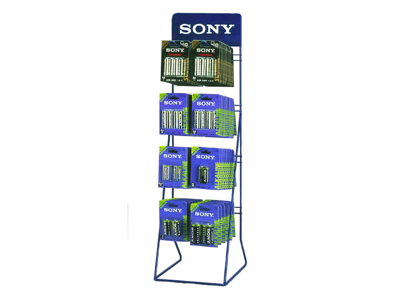 Asztali display, amely akasztós árukihelyezést tesz lehetővé pultokon, a pénztárak közelében. Kattintson a display képére a nagyításhoz!